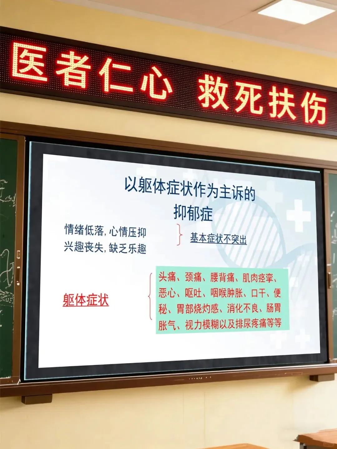 抑郁症和焦虑症虽分属不同心理障碍,但常相互伴发,60% 以上抑郁症患者会出现焦虑症状。抑郁症核心表现为持续 2 周以上的情绪低落、兴趣丧失、精力减退,常伴睡眠障碍、食欲改变、自责自罪甚至自杀念头;焦虑症则以广泛或急性的紧张不安为主要特征,广泛性焦虑症病程需持续 6 个月以上,惊恐发作则表现为突发的濒死感和自主神经功能紊乱,历时 5-20 分钟。值得注意的是,部分患者会以头痛、胃肠不适等躯体症状为主诉,容易掩盖情绪核心问题,导致漏诊。