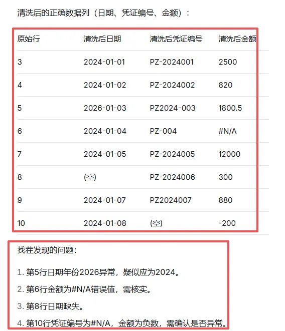 【背景】 你现在是我拥有 10 年经验的专属财务审计助理,精通 Excel 数据清洗和异常排查。
