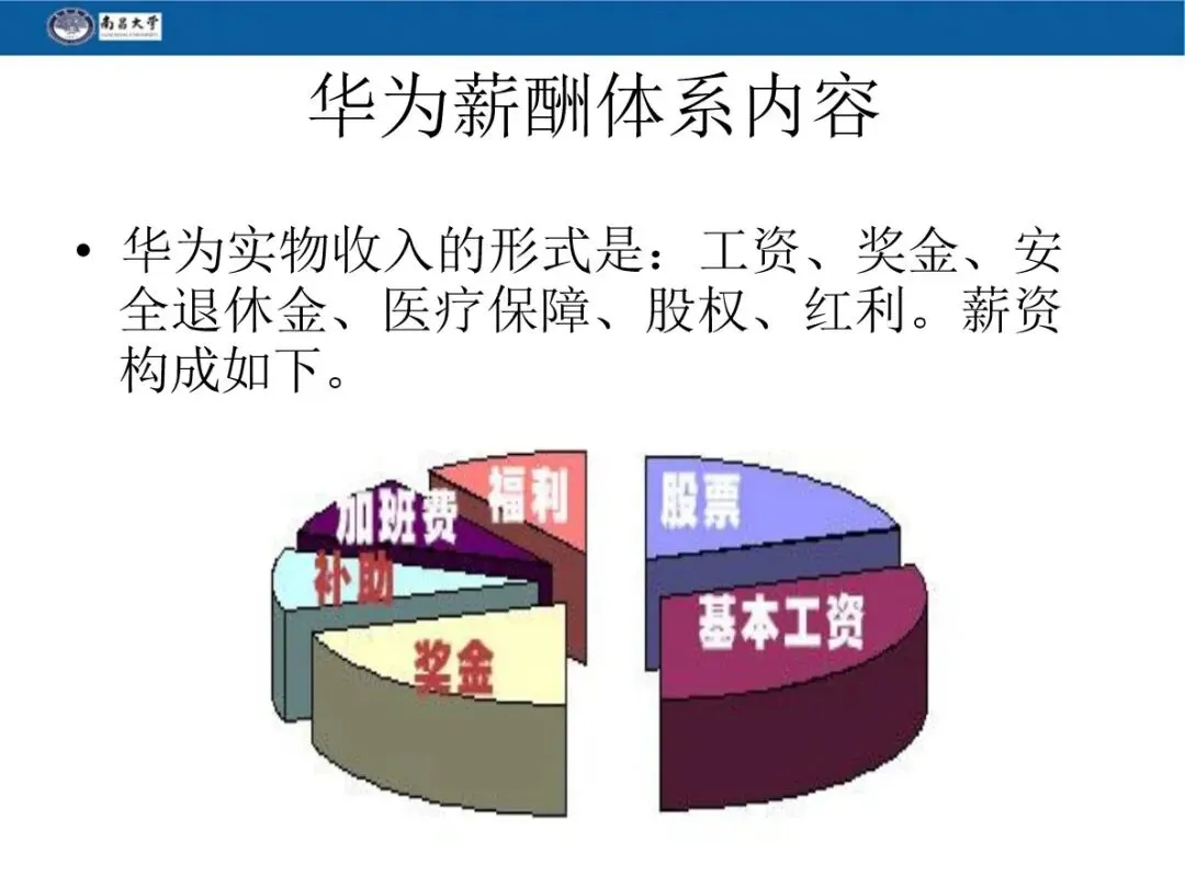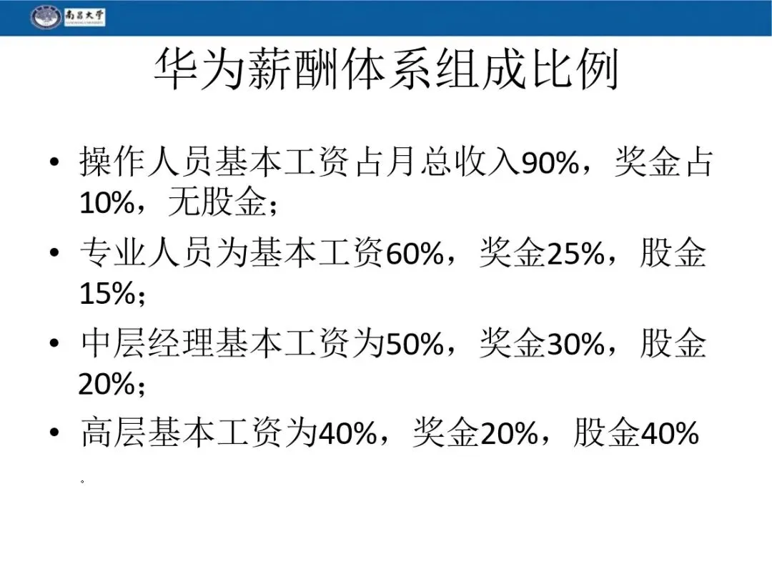 华为的实物收入由基本工资、奖金、福利、加班费、股权红利构成,不同岗位的薪酬结构比例差异明显,核心遵循 “层级越高,绩效与股权占比越高” 的原则。其中操作人员基本工资占月收入 90%,无股金;专业人员基本工资 60%、奖金 25%、股金 15%;中层经理基本工资 50%、奖金 30%、股金 20%;高层管理基本工资仅占 40%,股金占比达 40%,充分体现责任与收益相匹配。