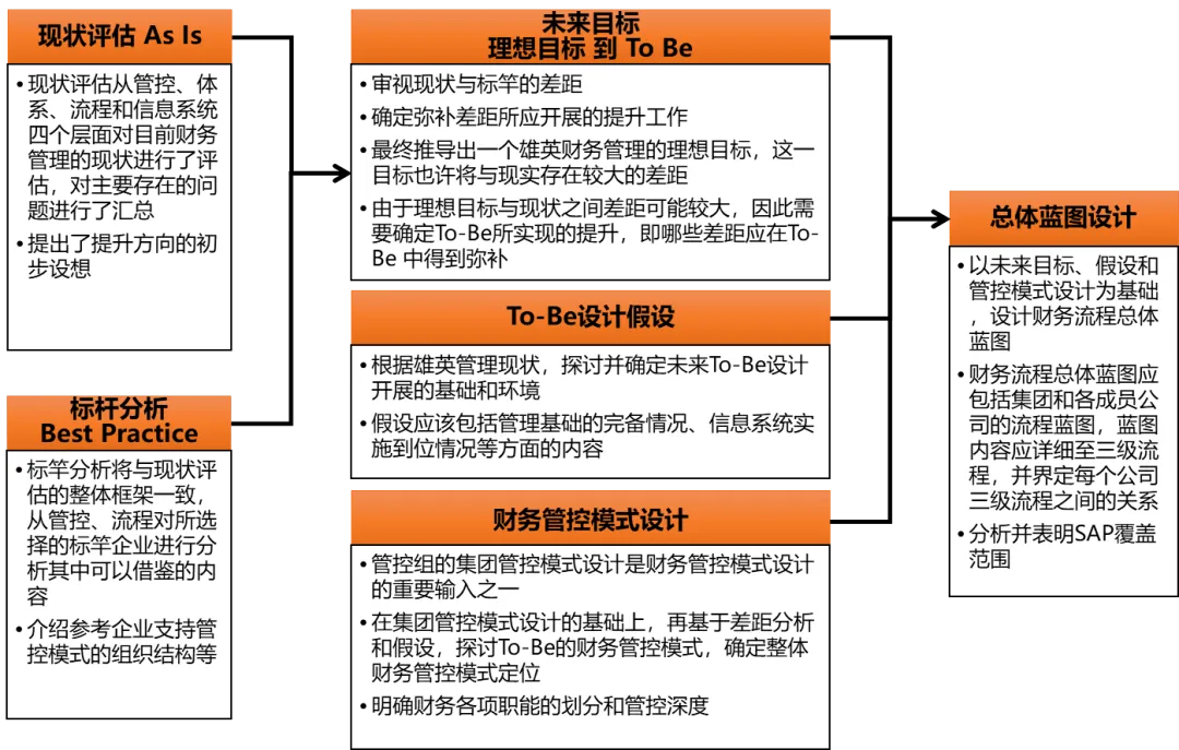 集团数字化转型锚定业财一体核心目标,以财务管控模式革新、管理体系规划、业务流程重构、SAP 功能设计四大维度为抓手,构建全链路数字化财务管控体系,破解传统管理痛点。