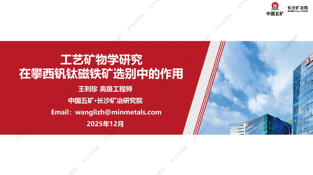 今天给大家带来的是 中国五矿·长沙矿冶研究院 王利珍老师 分享的“工艺矿物学研究在攀西钒钛磁铁矿选别中的作用”,希望大家喜欢。