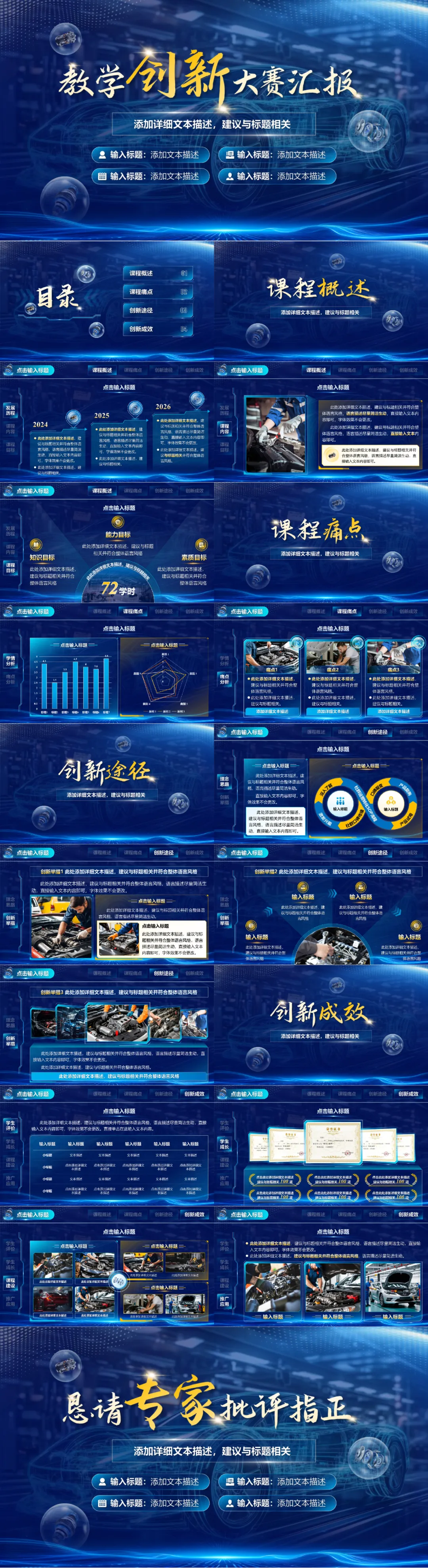 >【PPT模板】教学创新大赛汇报PPT模板(深蓝汽修)