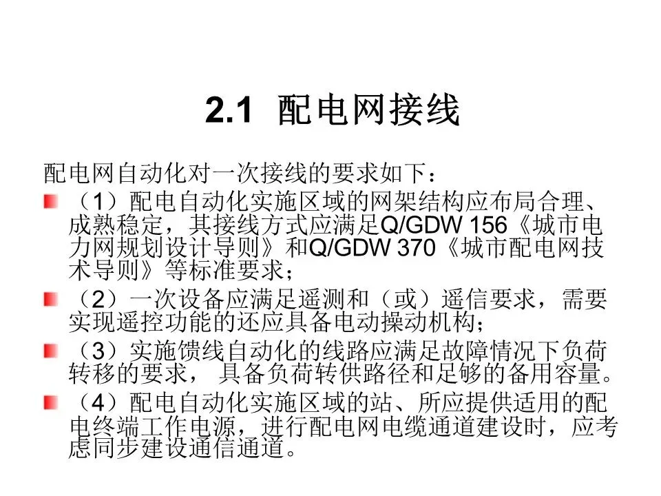 √(2)一次设备的建设与改造应考虑预留安装配电终端所需要的位置、空间、工作电源、端子及接口等。