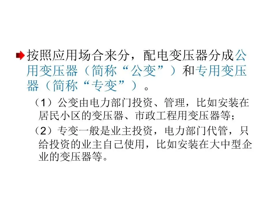 (1)公变由电力部门投资、管理,比如安装在居民小区的变压器、市政工程用变压器等;