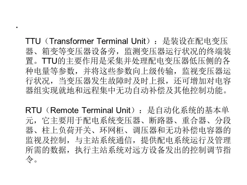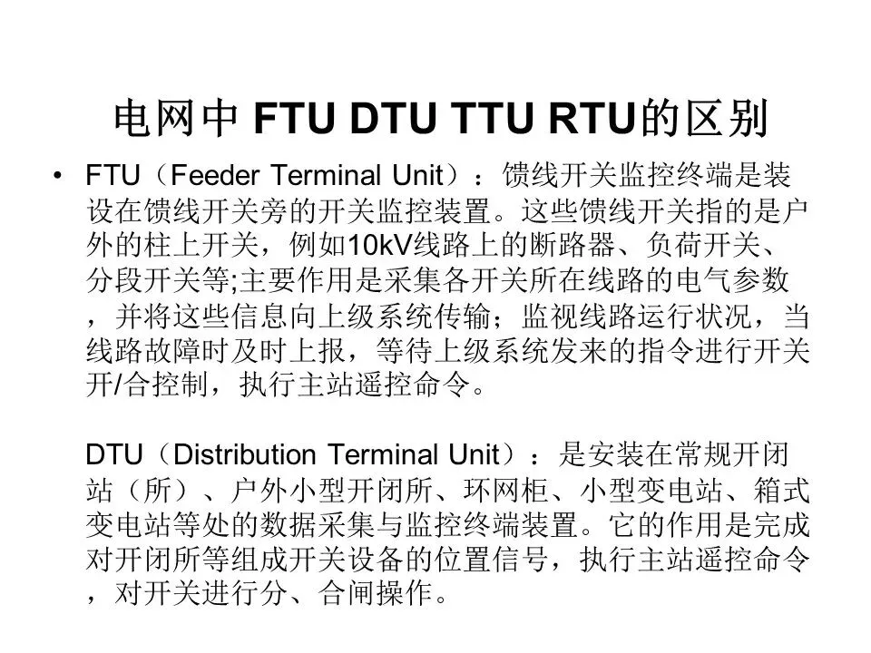 ·遥控(遥控信息):远程控制。接受并执行遥控命令,主要是分合闸,