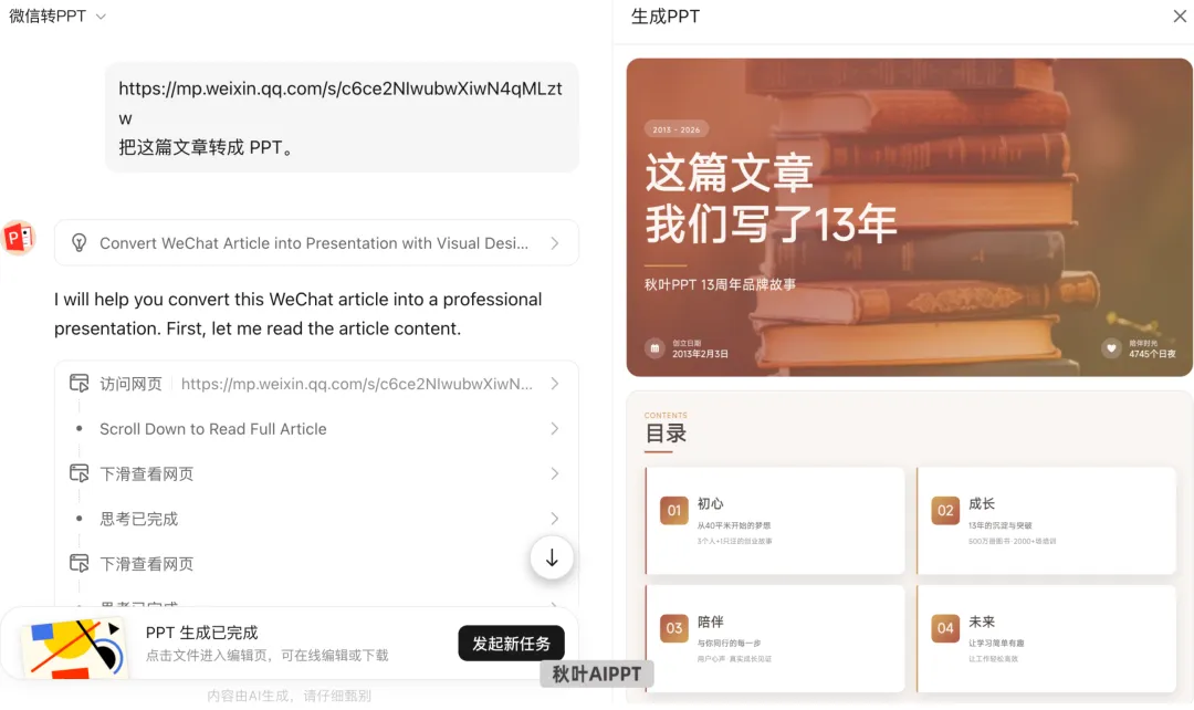 链接转 PPT:老板随手丢来一篇行业深度文章的公众号链接,让你明天早会做分享?