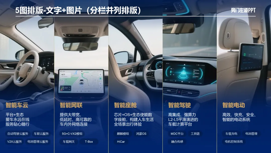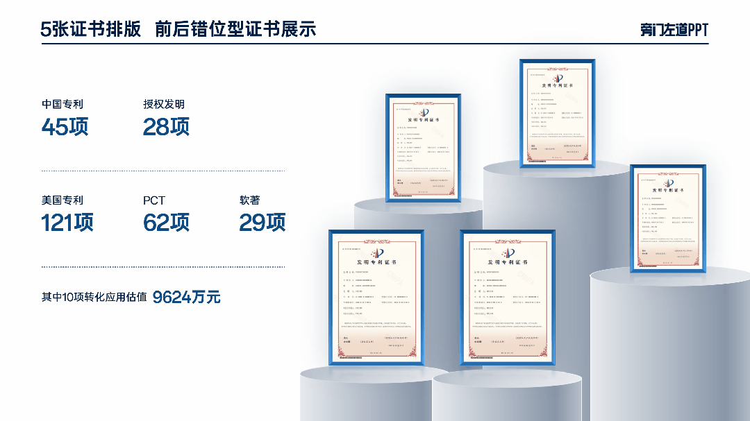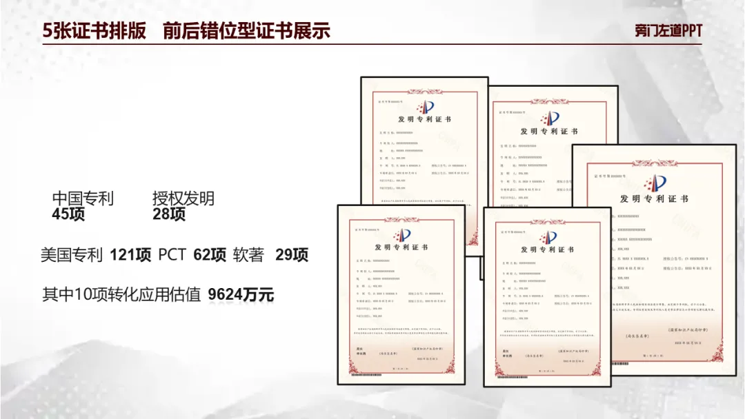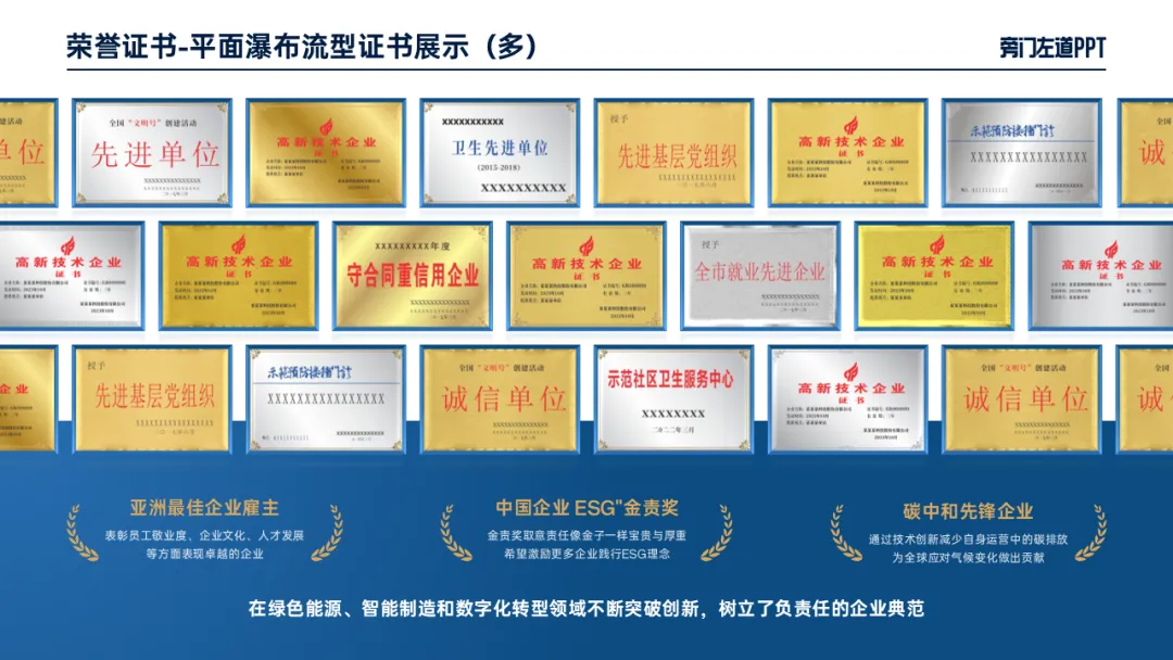 如果领导给的是丑截图,直接放在PPT上,显得太平淡了!活像贴了个补丁!如果页面缺少层次感,就在背后叠加一个色块,视觉层次会更丰富:还可以再找几张图,缩小放在样机周围,图片浮出的效果更有场景感:图片铺不满,就在右侧插入一个左侧100%透明,右侧不透明的蒙版,把图片融到背景里:然后插入一大一小两个矩形,合并形状-组合,一个“相框”就做好了:象征公司实力的荣誉证书,如果你只是随便放在页面上,领导肯定不满意:可以插入几个圆柱,调整颜色和透明度,做出立体的圆台:然后,你再把证书放在圆台上,看起来会非常有空间感:想要更有层次感,还可以把其中圆台换成长方体平面,突出关键数据,领导也会很满意!那你可以试试大厂都爱用的瀑布流排版:把图片都调整为统一大小,错落摆放。这样,不论是把图片横着摆,竖着摆,还是倾斜摆,都有不错的效果: 如果领导给的图片,是这样形状不规则的产品图,白底黑字会很普通:直接插入3个矩形占满屏,再把产品图放大,领导想要的“大气感”就有了:觉得看起来太单调,还可以工厂的图片拿过来,提高透明度当做背景:但如果你的产品介绍,有比较多的细节参数,内容很稀碎:把内容填进去,换个颜色,这样的产品介绍简单又清晰:那不管图片有多丑,排版都不能马虎!把领导抠出来,放大排版:但如果领导说,“把团队30多张照片放在一页PPT上”,一张一张抠图肯定是来不及的!我建议你多做一步,用一个文本框,也能做出这样的空间透视效果:当然,像这样的创意的图文排版,如果自己做嫌麻烦。