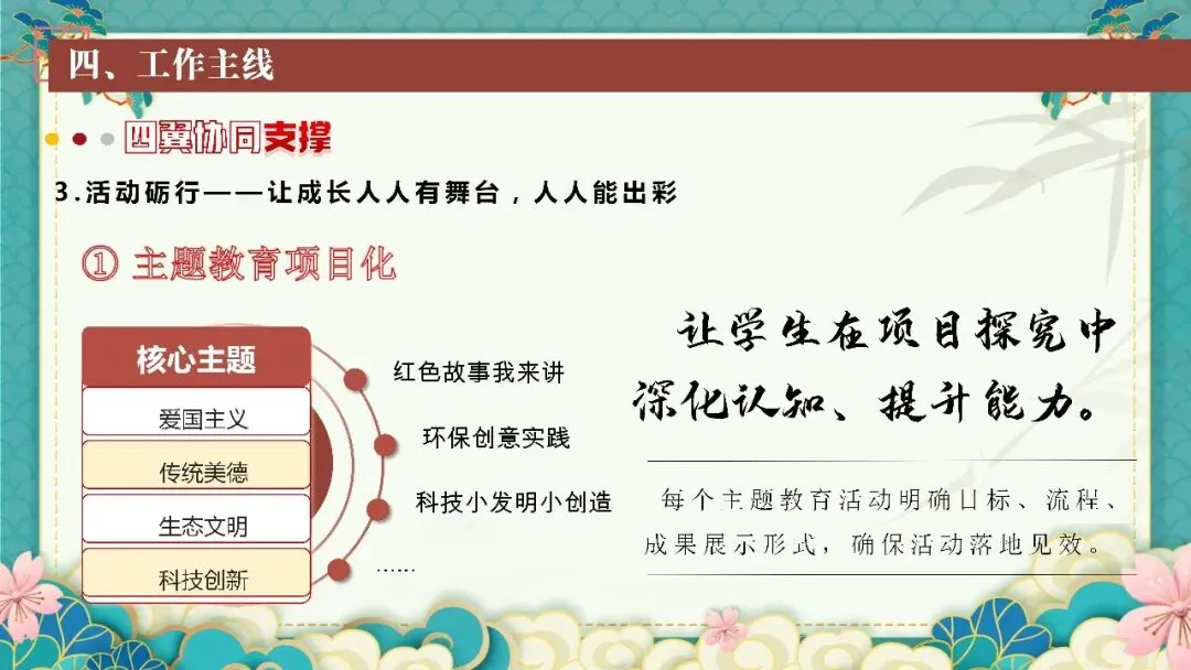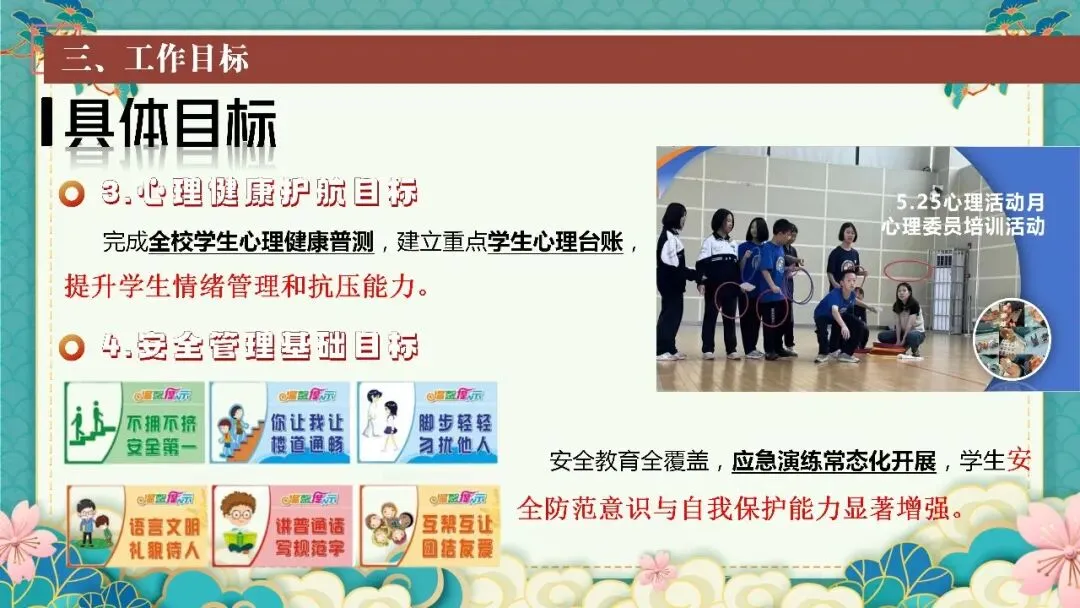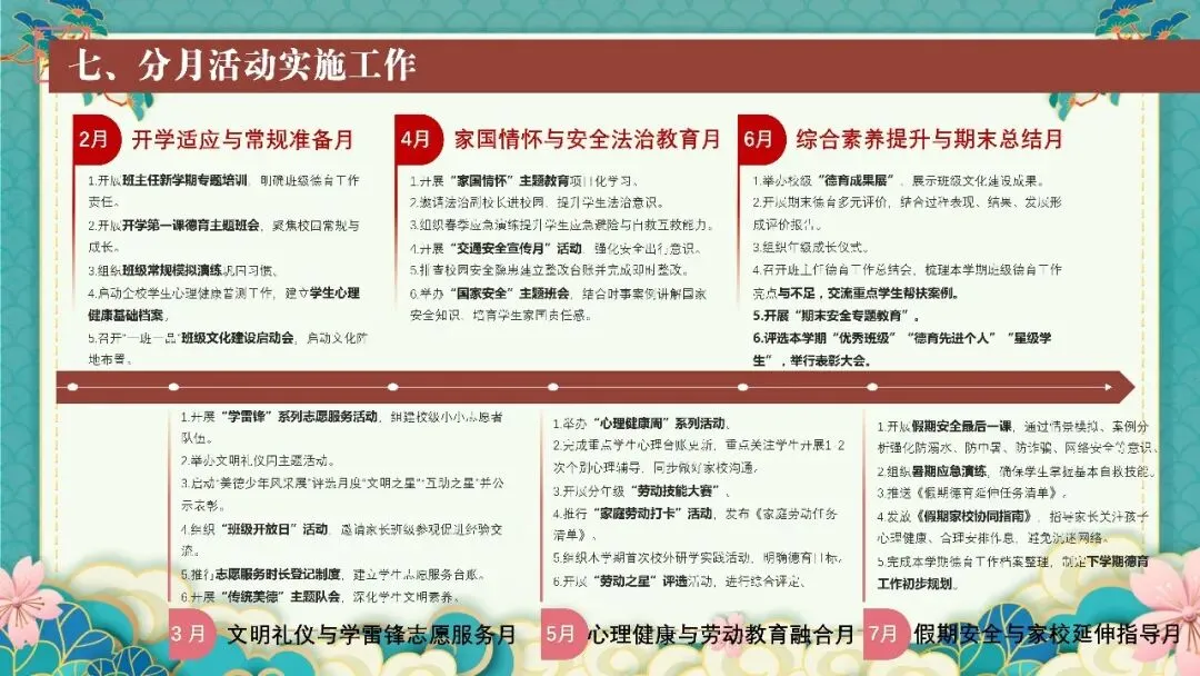 每月的主题活动更是丰富多彩,3 月学雷锋做志愿、学礼仪;4 月清明祭扫缅怀先烈,法治安全专题教育筑牢防线;5 月心理健康周呵护心灵,劳动技能大赛让孩子动手又动脑,低年级整理书包、高年级学做家常菜,在劳动中学会担当;6 月德育成果展晒出成长,还有成长仪式、评优表彰给孩子满满的仪式感。