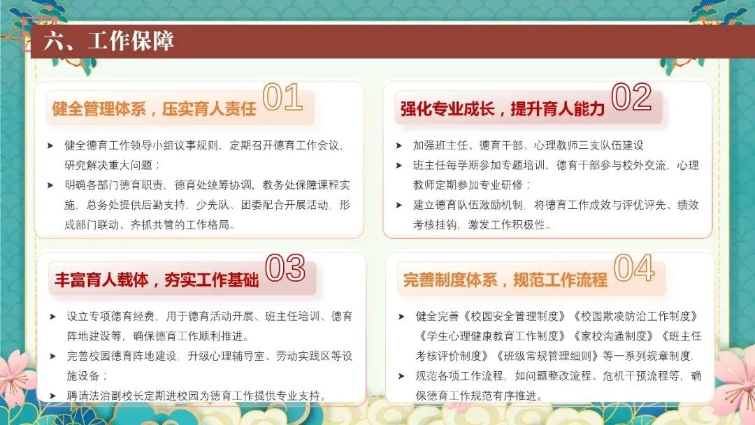 更戳我的是学校的用心,不仅完成全校心理健康普测,给重点学生建台账一生一策,还打造 “一班一品” 班级文化,让每个班都有自己的特色。家校协同也做得超到位,家长开放日、家长学校、三级沟通机制,让家长真正参与到孩子的德育成长中,还有校外研学、志愿服务,让孩子走出校园,在实践中长见识、明事理。