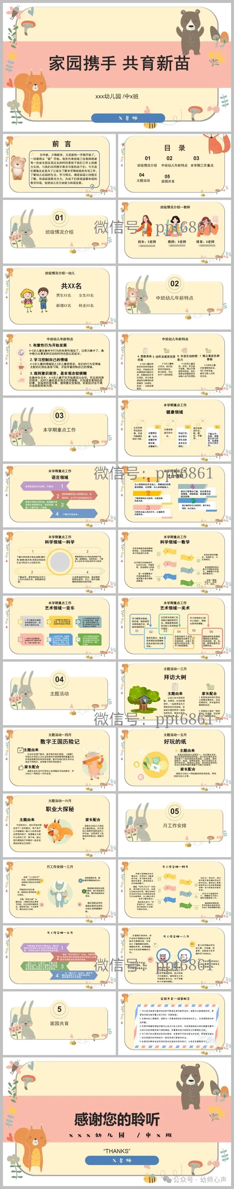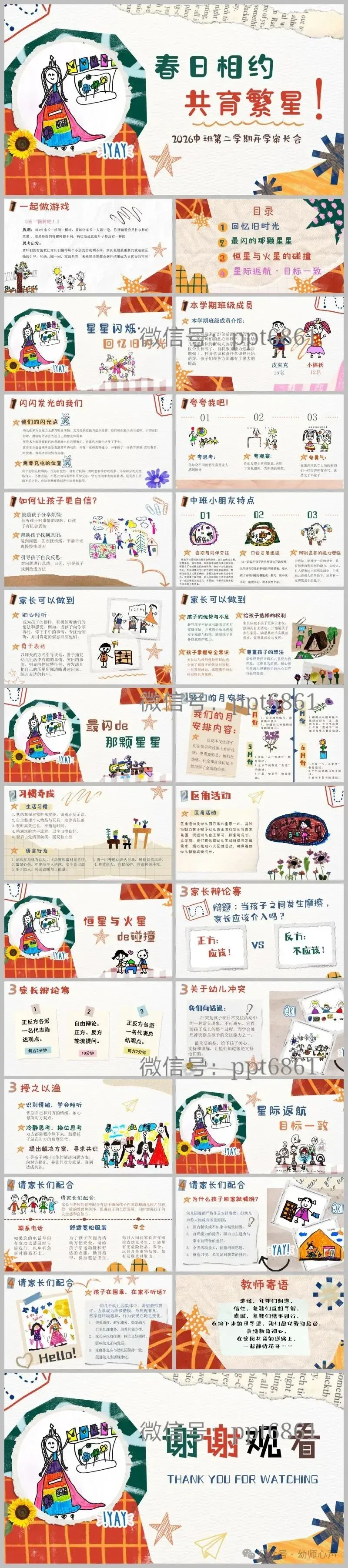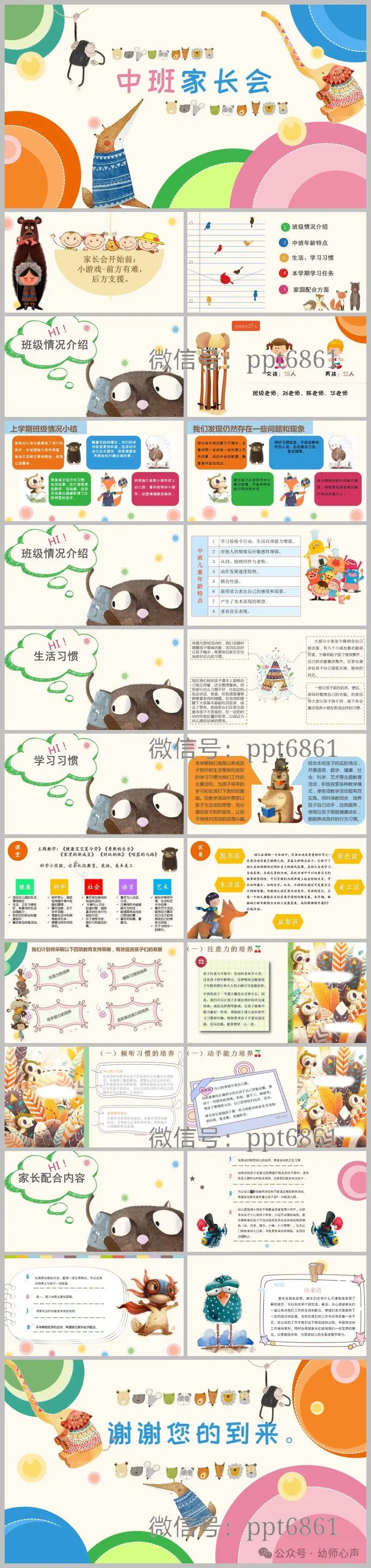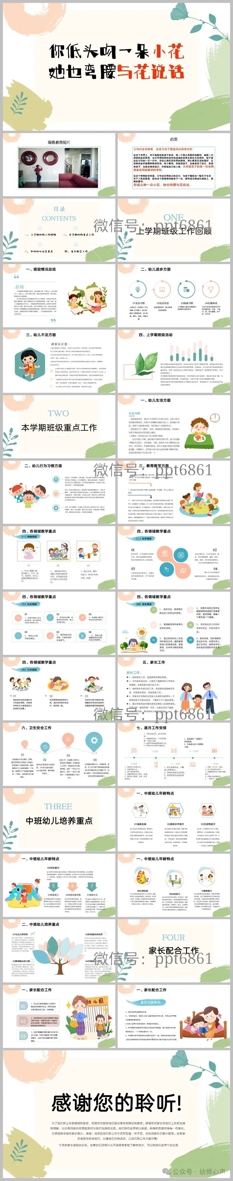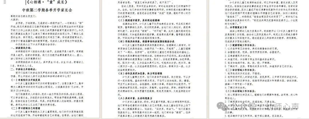 幼儿园中班春季家长会PPT+发言稿,可直接编辑使用
