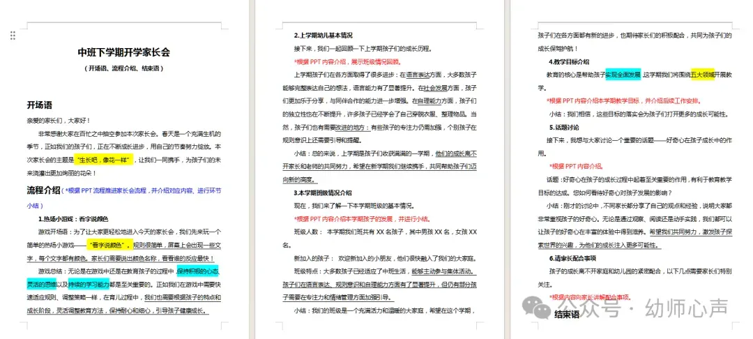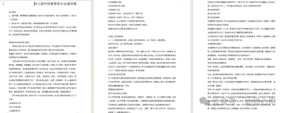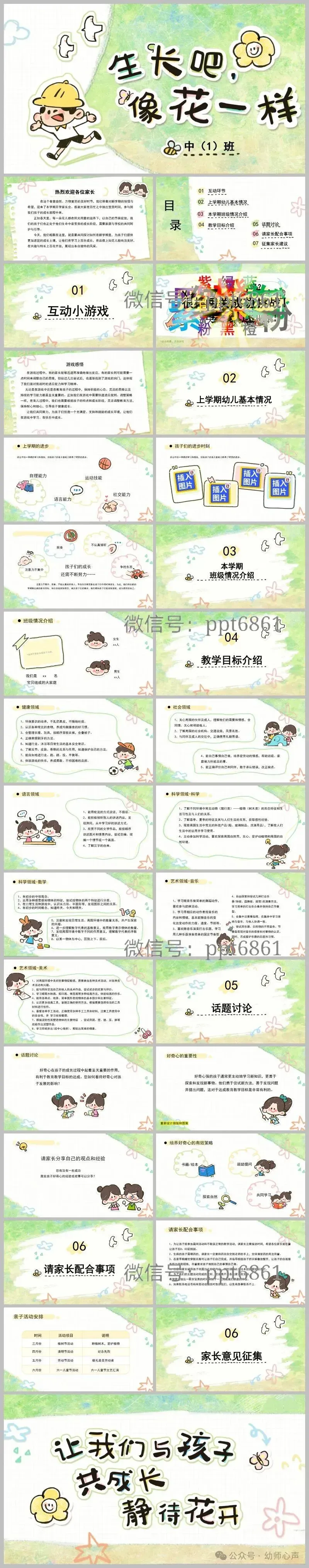 >幼儿园中班春季家长会PPT+发言稿,可直接编辑使用