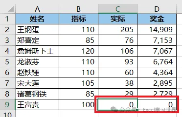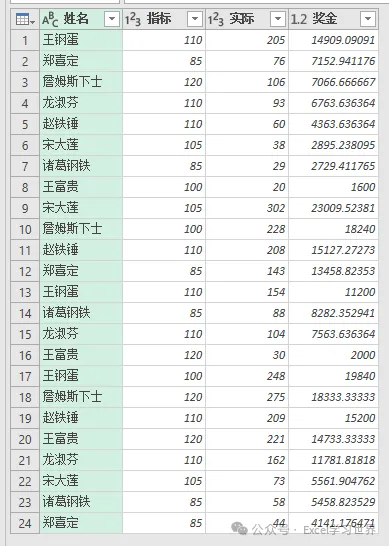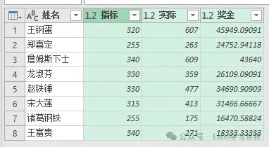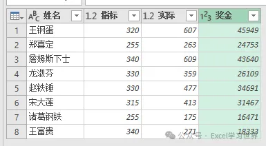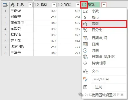 9. 点击“奖金”左边的格式符号 --> 在弹出的菜单中将格式修改为“整数”