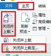 10. 选择工具栏的“主页”-->“关闭并上载”-->“关闭并上载至”