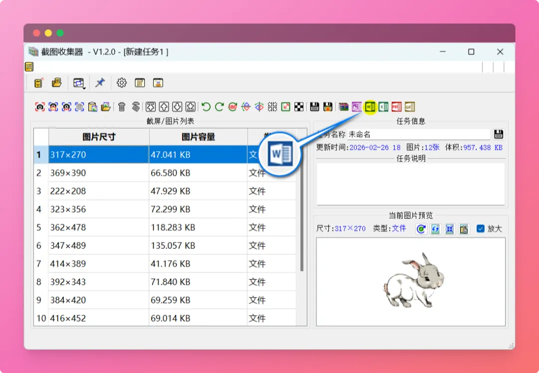 二、接着点击Word图标,将这些图片集中到Word文档中,制作成合集。