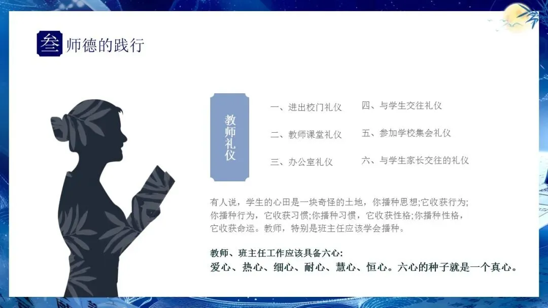 >教师师德培训PPT:师者,以德而耕.传道授业解惑,披星戴月树人.含讲稿