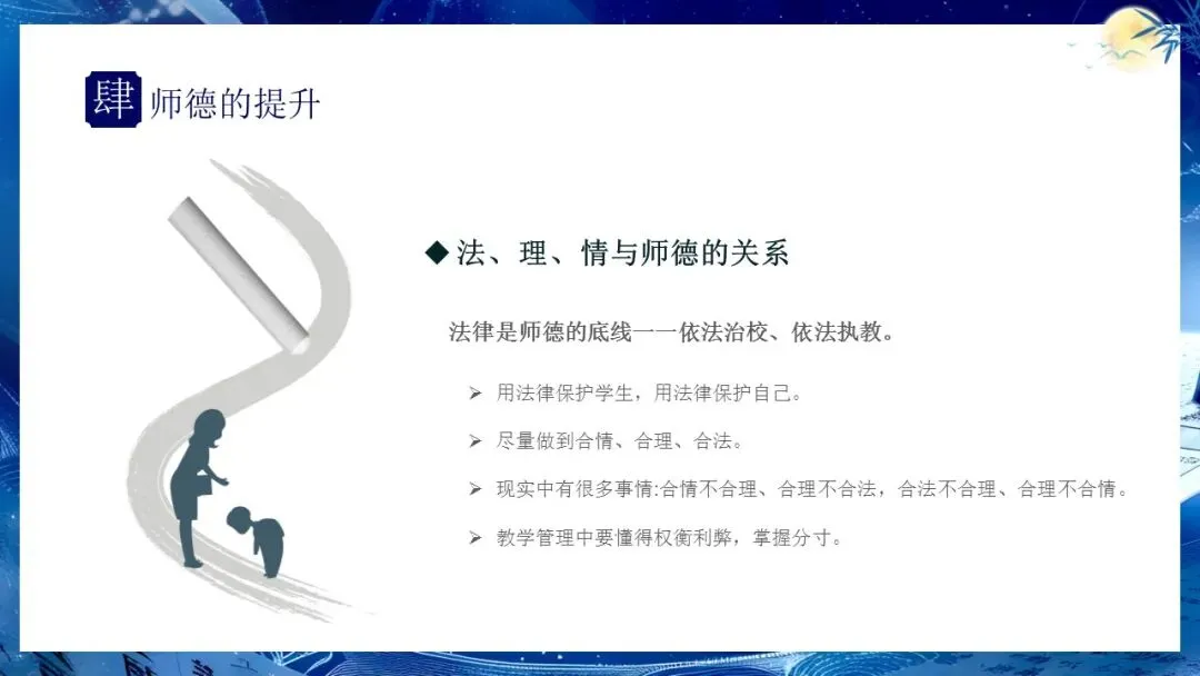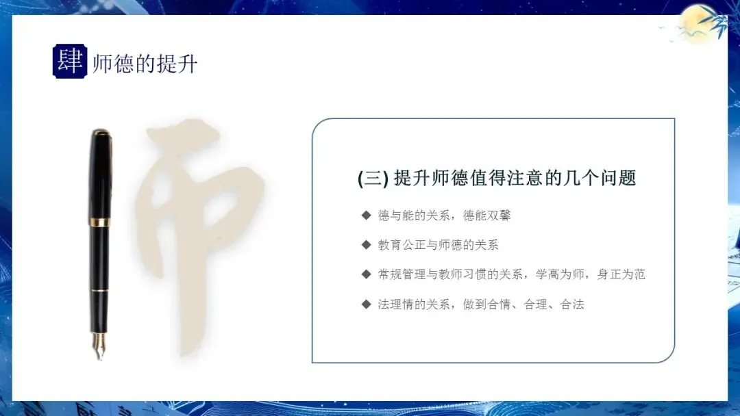 教师师德培训PPT:师者,以德而耕.传道授业解惑,披星戴月树人.含讲稿