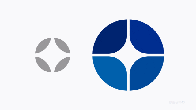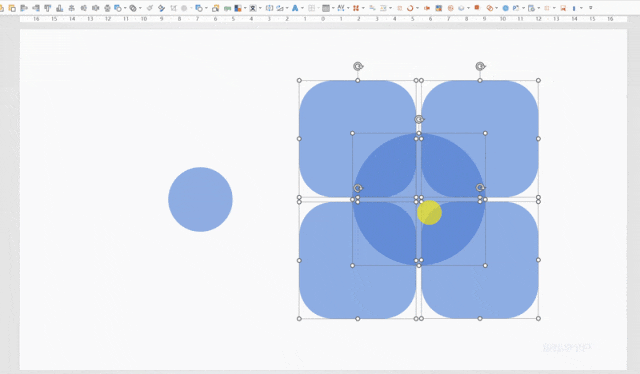 比如,以下是第一步,四个圆角矩形+一个圆形先【拆分】:
