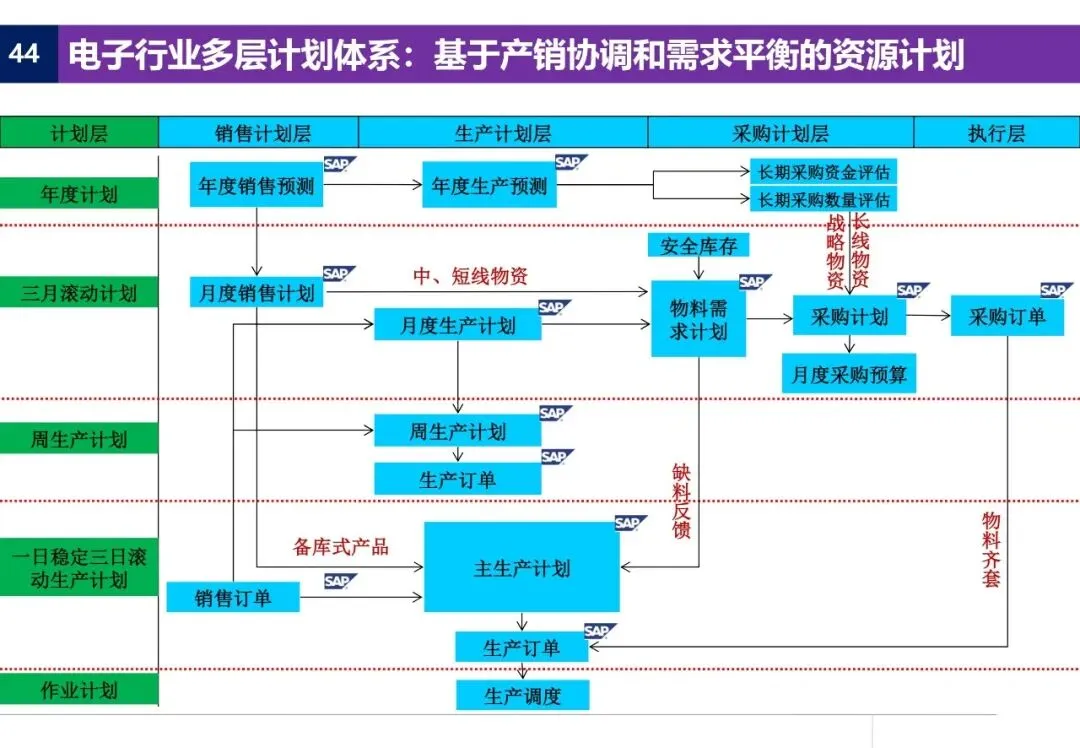 多层协同计划体系:SAP支持从长期销售预测到主生产计划(MPS),再到物料需求计划(MRP) 的多层计划架构。它能有效协同营销公司与生产基地,兼顾按单生产(MTO)与备库生产(MTS)的混合模式,快速响应市场变化。