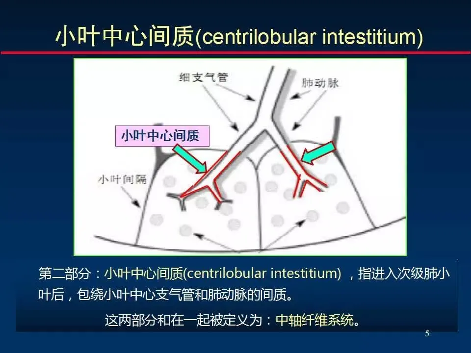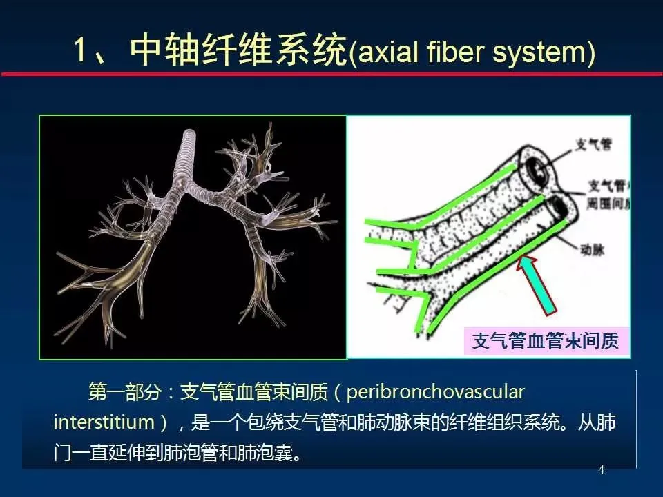 中轴纤维系统:支气管血管周围间质和小叶中心间质