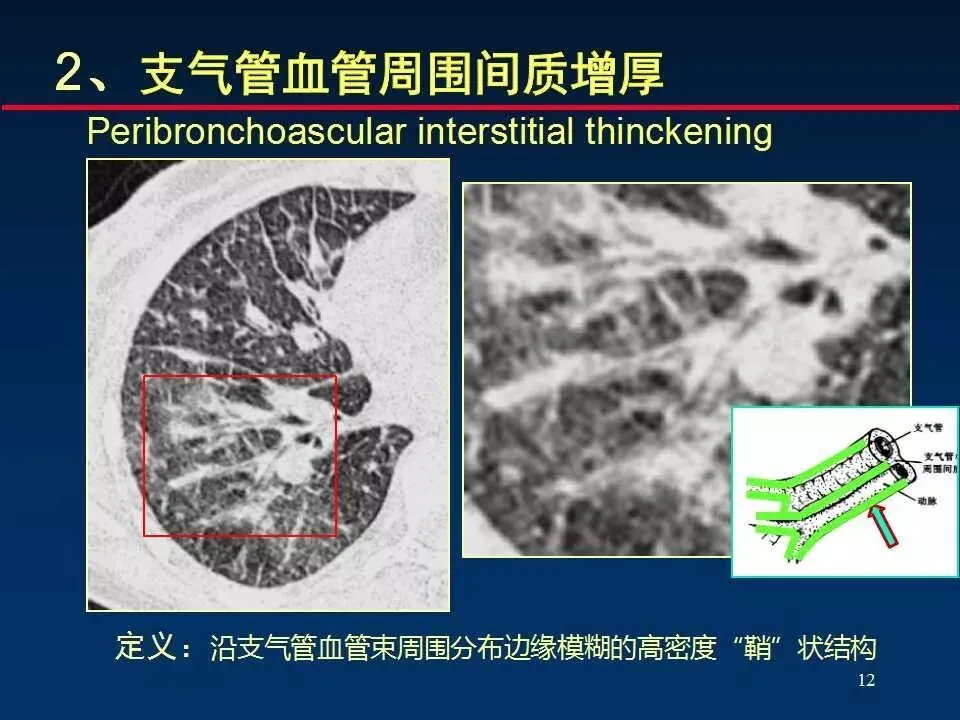2、支气管血管周围间质增厚 Peribronchoascular interstitial thinckening