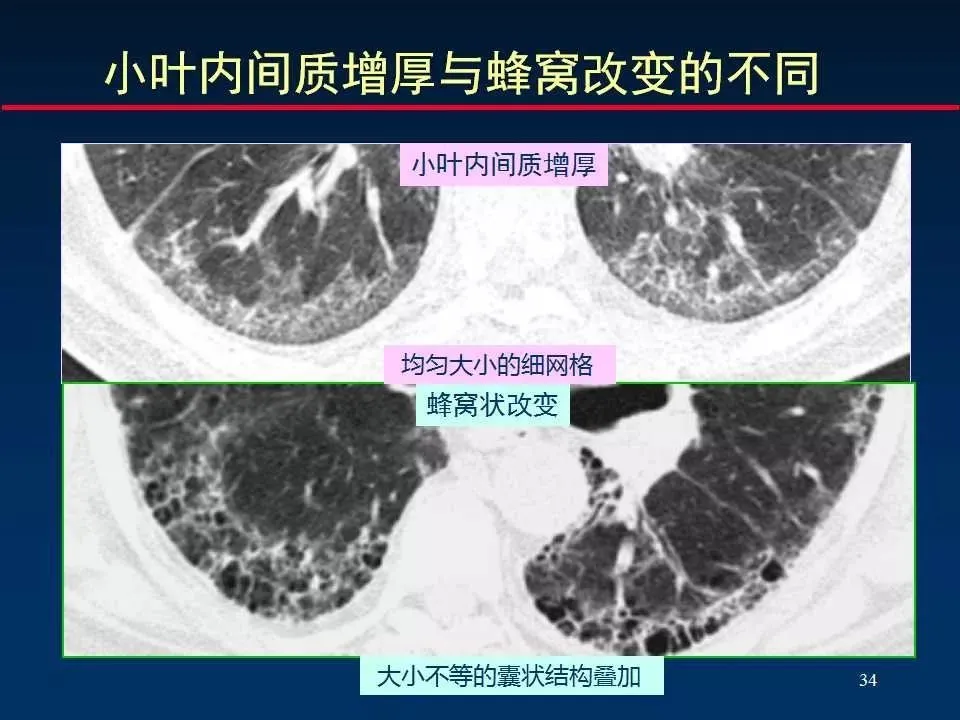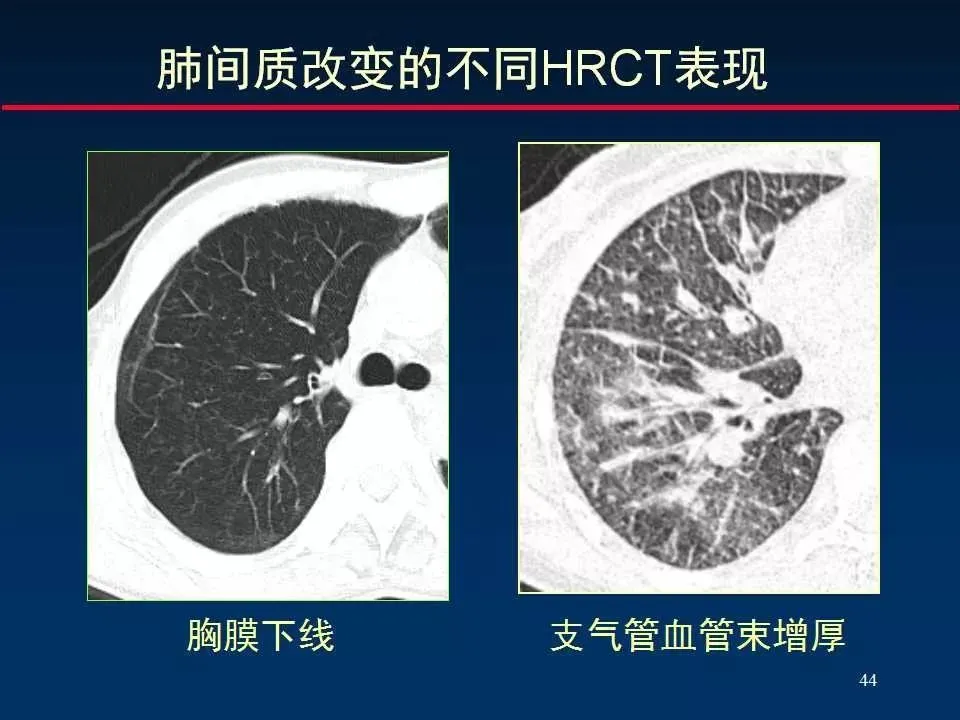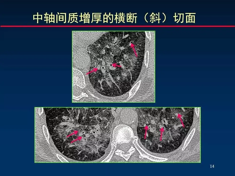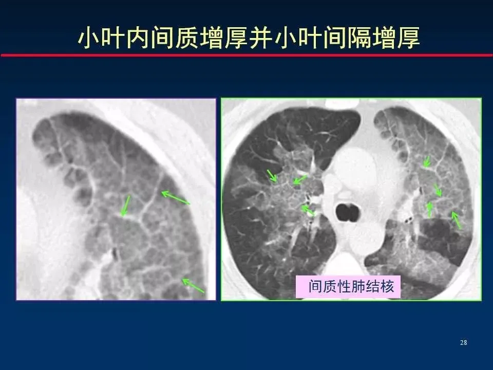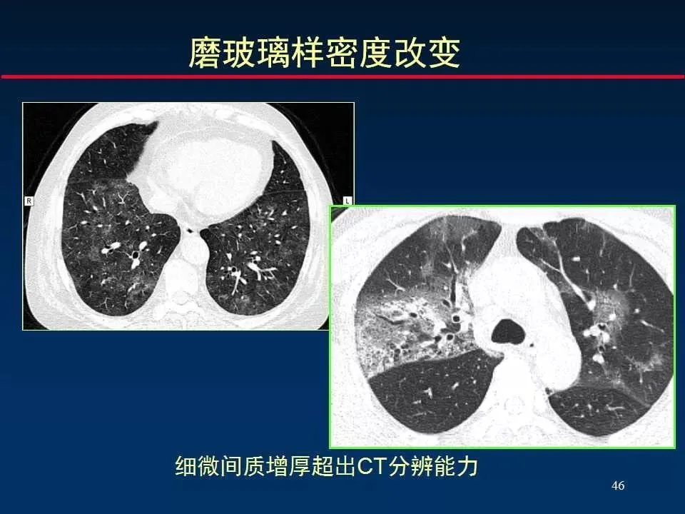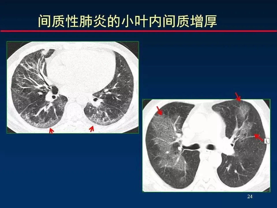 间质性肺炎则主要表现为肺间质的炎症性改变,尤其是肺间质腔的扩大和炎症细胞浸润,可能伴有纤维化。