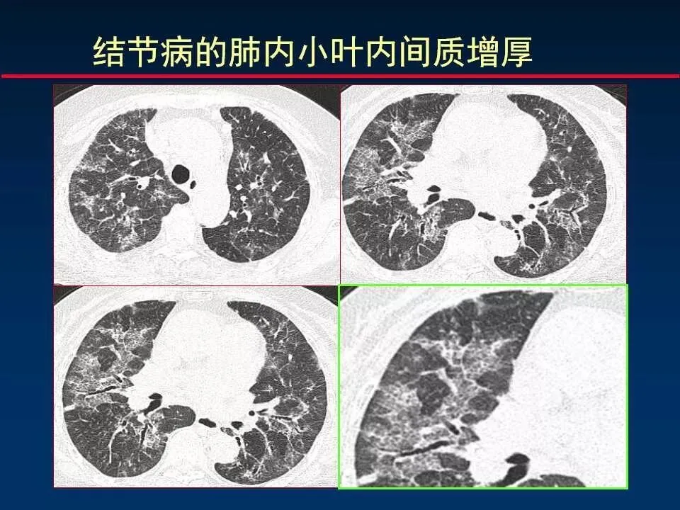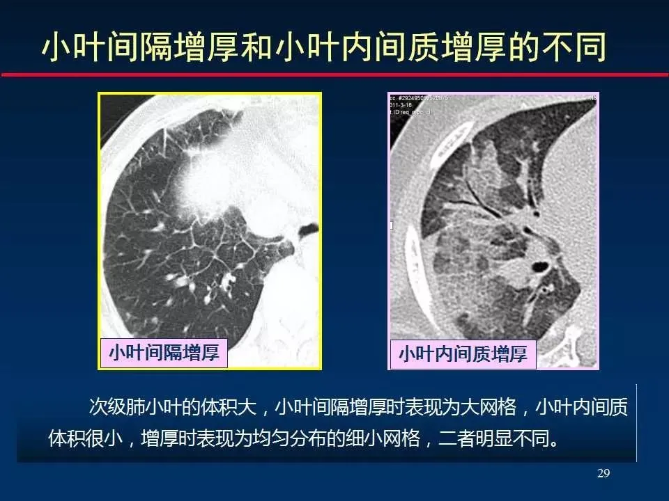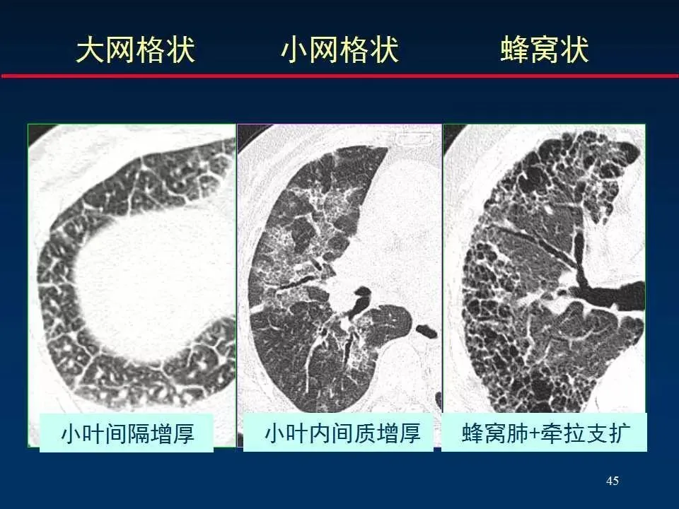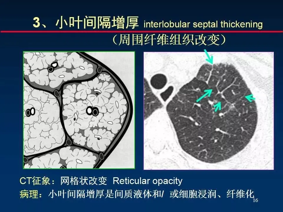 3、网格状改变 reticular opacity (小叶间隔增厚)