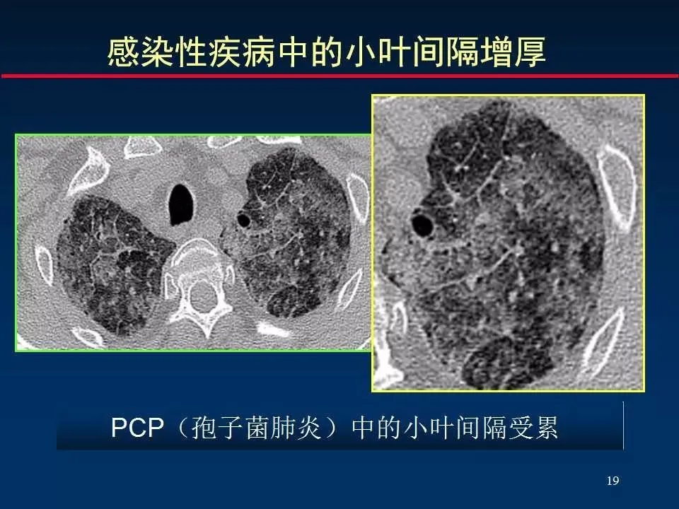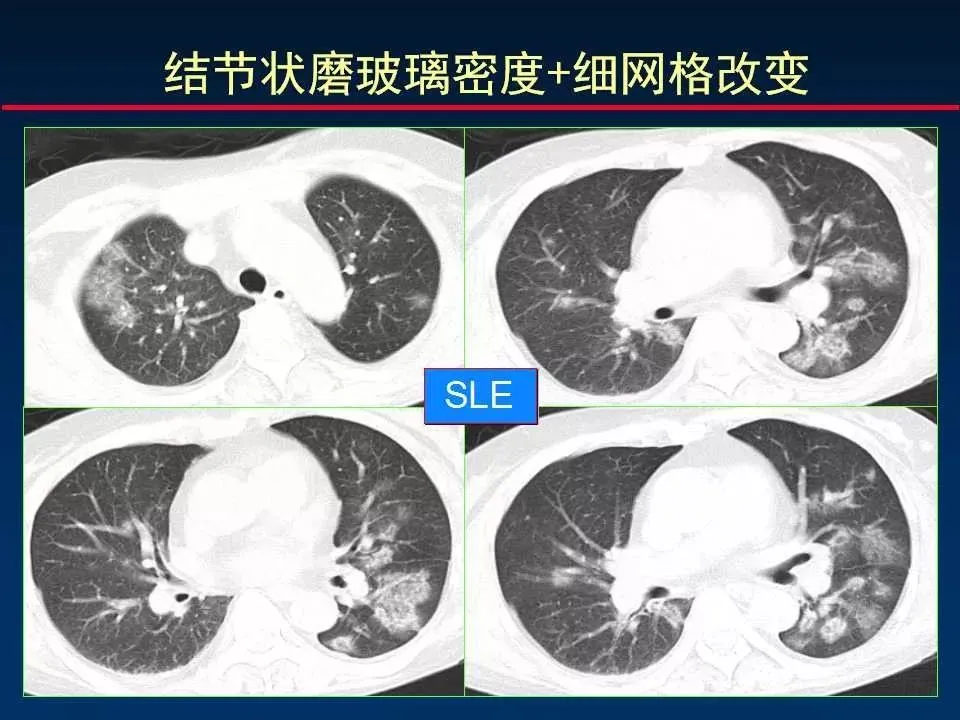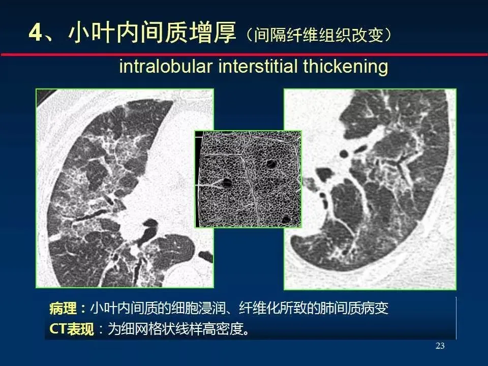 4、细网格状改变 Fine reticular opacity (小叶内间质增厚)