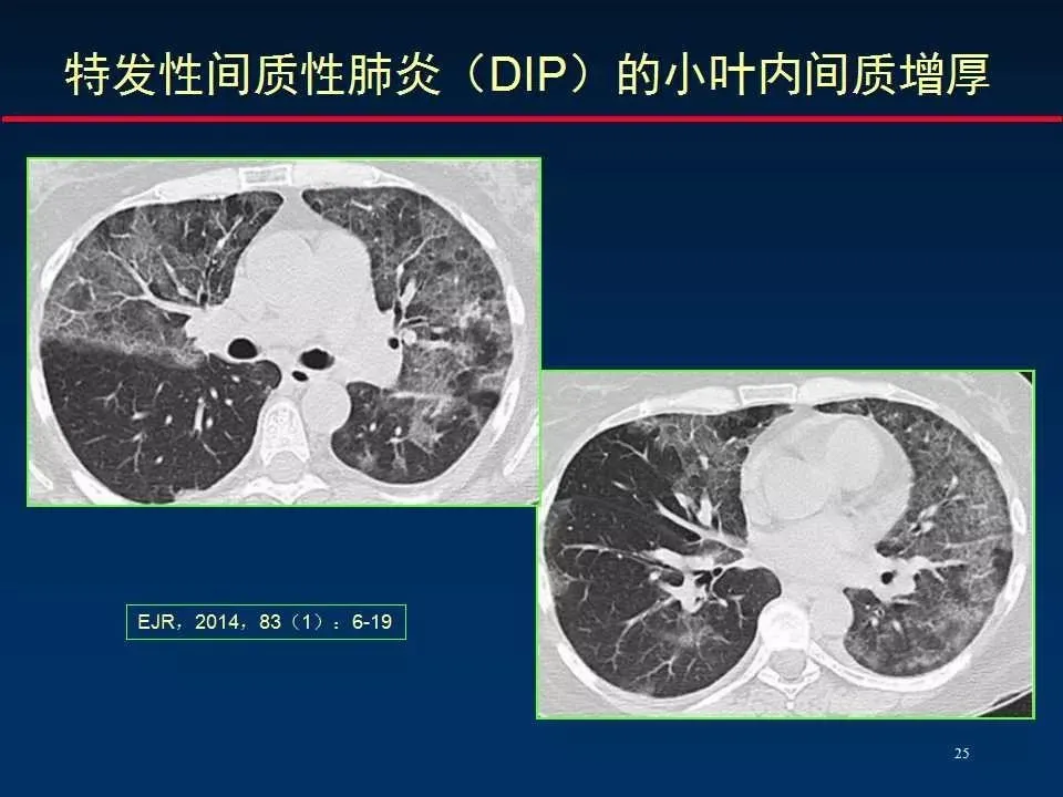间质性肺炎的诊断较为复杂,可能需要更高的分辨率的影像学检查如高分辨CT,治疗则更侧重于症状缓解和疾病进展的延缓,可能包括使用糖皮质激素和其他抗纤维化药物。
