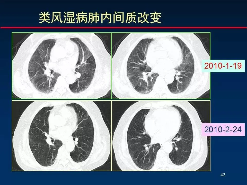 间质性肺炎的症状则通常隐匿出现,表现为逐渐加重的呼吸困难,有时伴有刺激性干咳,症状通常不伴有发热,这可能导致患者和医生忽视其严重性。