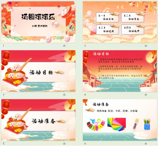 1.愿意参与到制作汤圆的过程中并分享自己的感受与喜悦,感受元宵节的欢快氛围