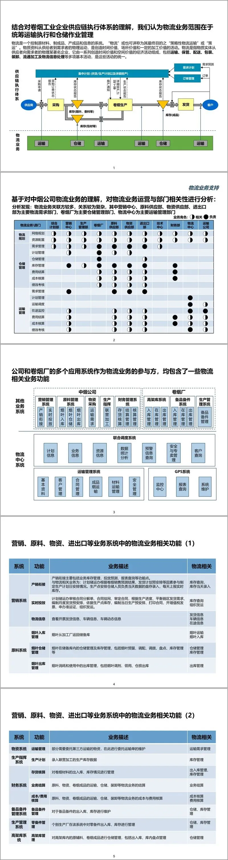 架构设计环节明确了设计目标、范围、方法与原则,立足行业要求与企业物流规划,借鉴国际领先实践,构建“四横一纵” 的应用架构框架。“四横” 包括决策支持系统、业务管理系统、业务作业系统、基础支撑系统,“一纵” 为供应商管理系统,实现业务规范化、集约化管理。核心系统涵盖物流综合管理系统、仓储管理系统(WMS)、运输管理系统(TMS)等,全面覆盖需求计划、仓储运营、运输管理、供应商管理、运营分析等功能模块,同时明确了各系统间的集成关系与数据流转逻辑。