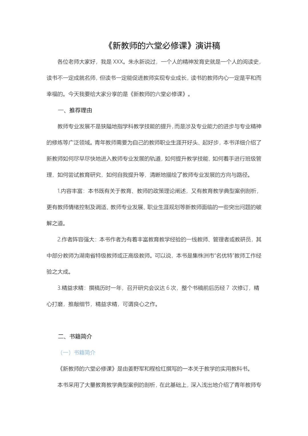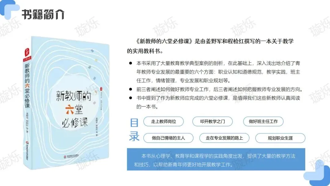 亲爱的读者朋友们,您好!今天我们要分享的书籍是《新教师的六堂必修课》。