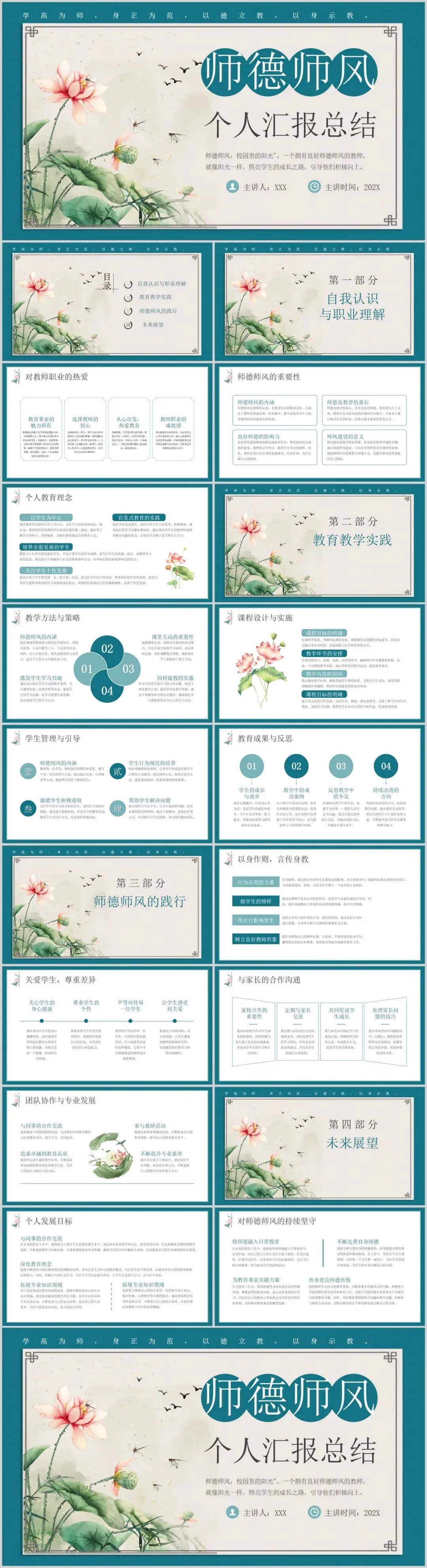 这份PPT更像一面镜子,能帮助我们系统反思“如何成为一名更好的老师”。 其完整的逻辑体系,为我们梳理自身教育实践、准备职称评定或优秀评选汇报,提供了极具参考价值的范本。不妨用它来为自己的教育生涯做一次温暖的回顾与展望。
