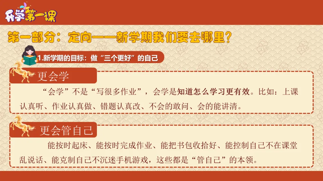 新学期的目标是做"三个更好"的自己:更会学、更会管自己、更有责任感。