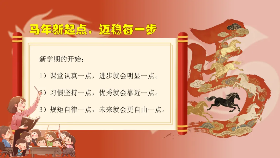 马年新起点,迈稳每一步。新学期就像一本新书,第一页怎么写,很重要。最关键的,是从今天开始做。