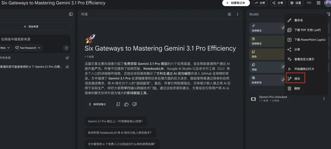 NotebookLM 的生成的 PPT 终于可以修改了!