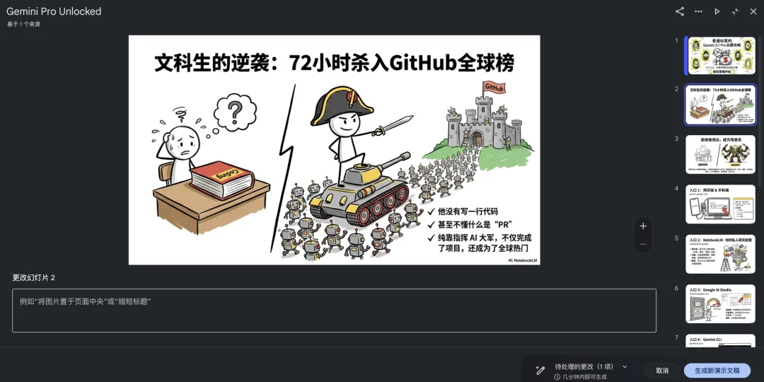 可能是谷歌发现用户使用 NotebookLm 时,PPT 功能用的最频繁,还在那反复抽卡,浪费了大量算力,索性开放权限吧,让用户们直接修改。