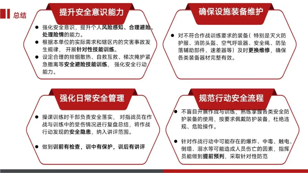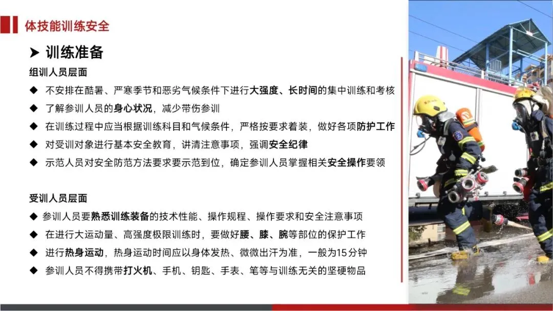 1. 重点内容(防护装备使用、车辆安全、伤害防范、训练安全)