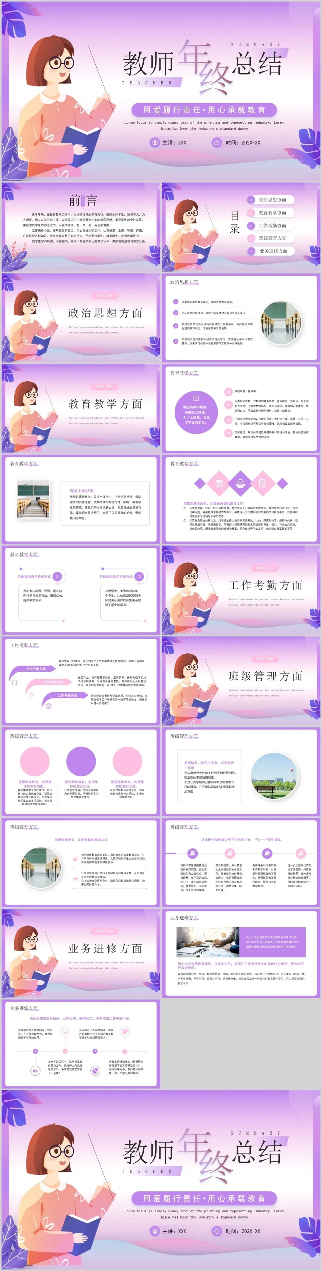 这套教师年终总结PPT以清晰的结构,引导你完成一次深刻的职业复盘: