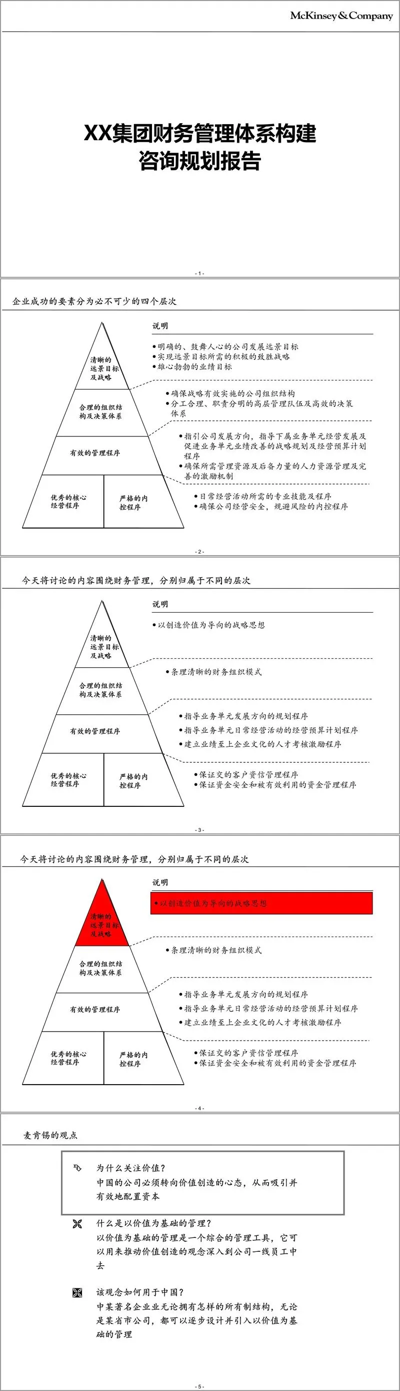 在企业竞争日趋激烈的市场环境下,构建科学高效的财务管理体系成为集团实现价值创造与可持续发展的核心支撑。麦肯锡这份咨询规划报告,以价值管理为核心,从战略、组织、流程、风控四大维度,为 XX 集团打造了全方位、多层次的财务管理体系构建方案,兼具理论深度与实践可行性。