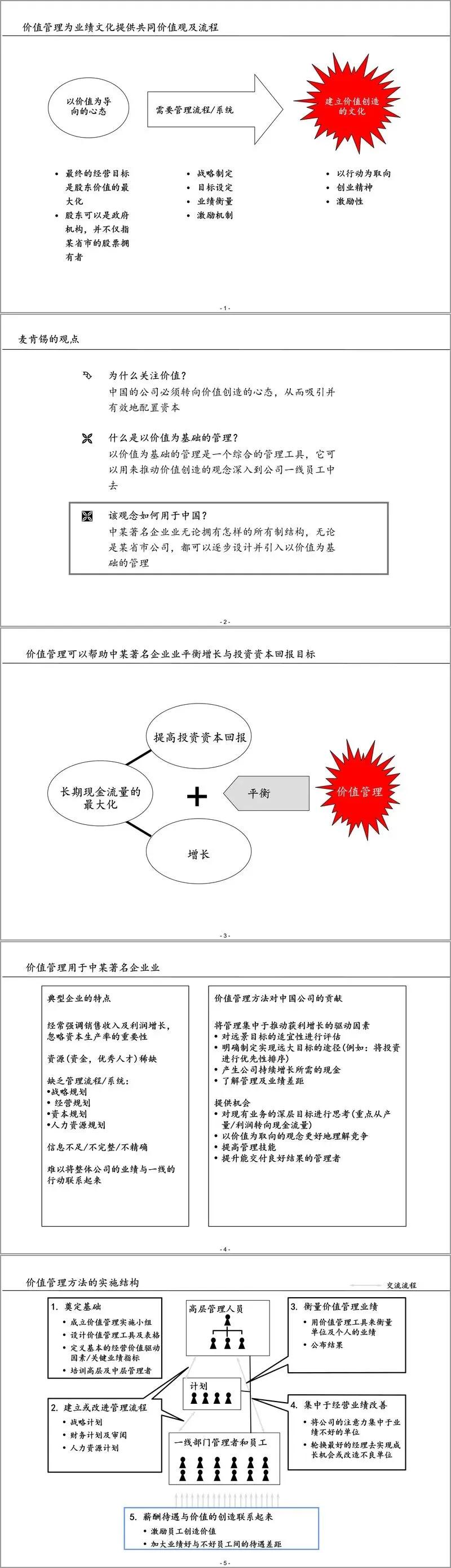 此外,报告给出了价值管理的实施路径,分为奠定基础、建立管理流程、衡量业绩、集中经营改善、薪酬与价值挂钩五个阶段,强调高层管理者的积极投入、牢固的基础建设、聚焦实际应用等成功关键要素。通过循序渐进的实施,推动价值创造理念深入企业各层级,实现战略、组织、流程、风控的协同优化。