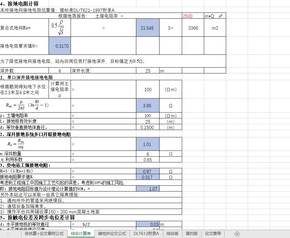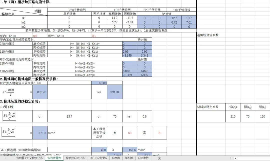 【免费下载】Excel版,2026年最新变电站接地计算书!