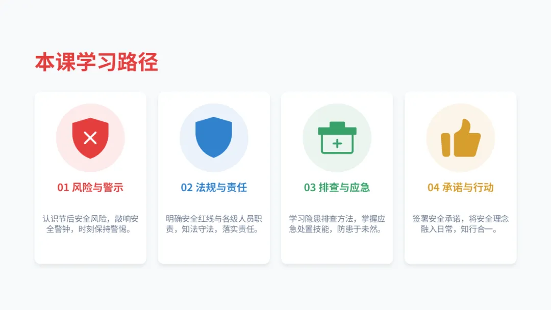 第一部分是 "风险与警示",我们要让大家明白为什么节后安全如此重要。
