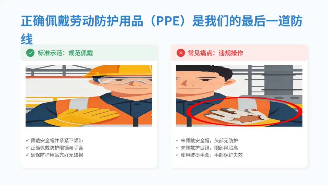 正确佩戴劳动防护用品(PPE)是我们的最后一道防线