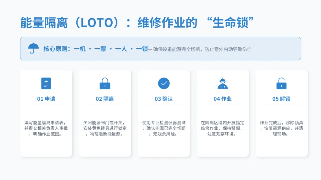 3.必须能量隔离:进行设备维修时,必须先切断电源和气源