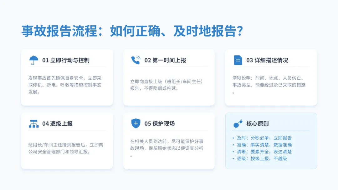 5.必须报告异常:发现任何安全隐患或异常情况,必须立即报告