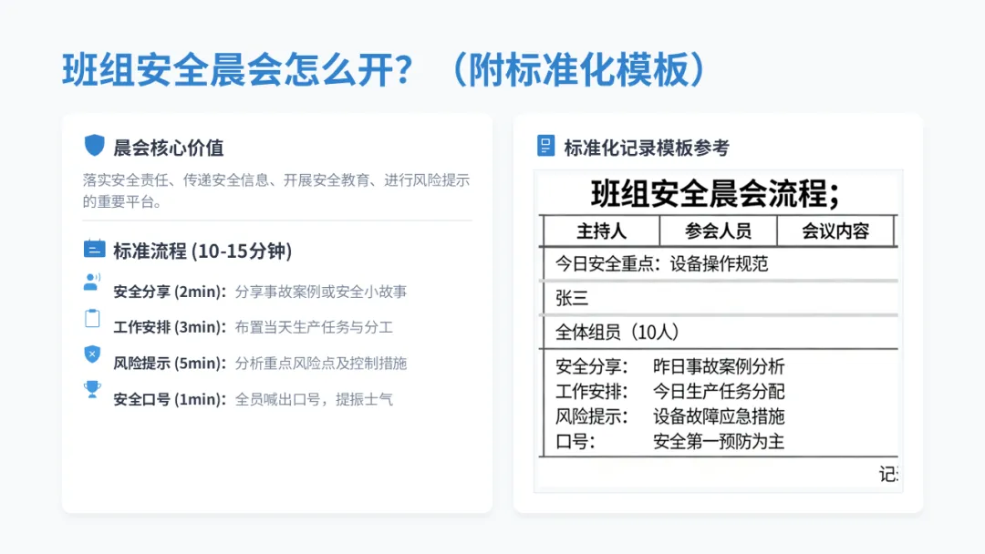 记住,安全晨会不是走过场,而是为了让大家每天都能带着安全意识开始工作。