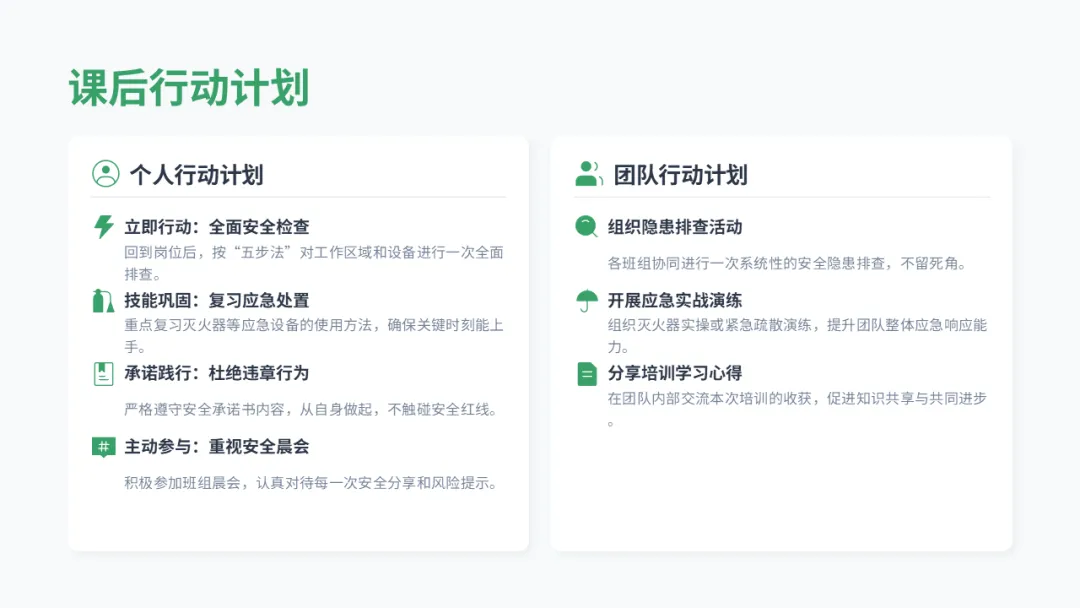 为了确保今天的培训内容能够落实到实际工作中,我给大家布置几个课后行动计划: