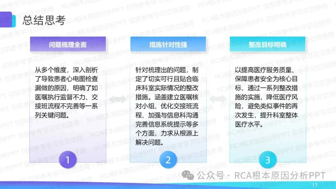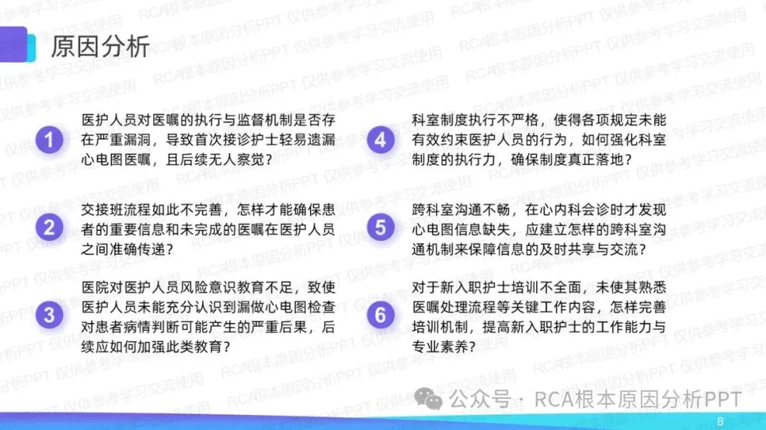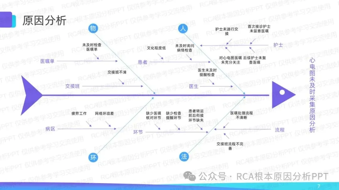 通过对本次心电图未及时采集的不良事件进行深入分析,从医嘱执行监督、交接班流程、风险意识教育、科室制度执行、跨科室沟通以及新入职护士培训等多个维度,全面梳理了导致问题发生的原因,明确了各个环节存在的关键问题,为后续的整改工作提供了明确的方向。