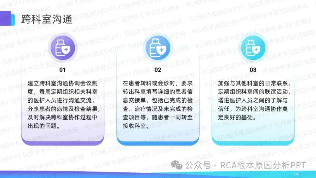 针对梳理出的问题,制定了一系列切实可行且贴合临床科室实际情况的整改措施。这些措施涵盖了建立医嘱核对小组、优化交接班流程、加强风险意识教育、完善新入职护士培训以及建立跨科室沟通机制等多个方面,具有很强的针对性和可操作性,力求从根源上解决问题,避免类似事件的再次发生。